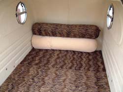 The Sleeper weighs in at 100Kg in its bare ready to roll form. This makes it one of the lightest Teardrops currently available anywhere. It can be supplied in kit form for a self build or ready built. The body is fibreglass and can be colour matched at the mould stage, or sprayed to whatever design you have in mind. Almost any RAL coded colour can be done as well as Glitter or special finish. It stands on 8” wheels and after towing the demo around with me behind the Trike, it rolls along nicely balanced and draws a LOT of attention. But we decided not just to stop at that. The interior is basic and as weight is THE main issue for towing with Trikes, Sarah and I researched option after option of fitting out the Sleeper with some home comforts.