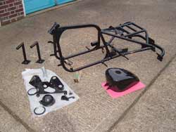 All these parts, including the satin black headlight shell, a couple of metallic silver parts for Darren’s orange trike & the two right-angled bars, which bolt to the floor of my garage to padlock the door to, shot blasted & coated, came to 100 quid. |