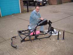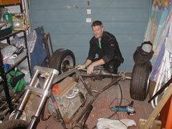 The face behind the mask. -Wha’dya mean, put it back on! This show was brought to you by the letter M & the number 3. And me! Andy. Who’s spent his afternoons & weekends toiling away in the garage, & his evenings hunched over a keyboard, trying to explain it all to you lot. Feel like I’ve cut, welded & ground enough steel in the last few months to build an oil rig. A couple of phone numbers for those that may actually be inspired to try a little project of their own: O.K, that’s me done. Hope it’s been of some use to somebody out there. I’ve enjoyed putting this write-up together so I’ll add a few more short pieces as the final build progresses & throw in a couple of extra chapters on my own new frame as well. |