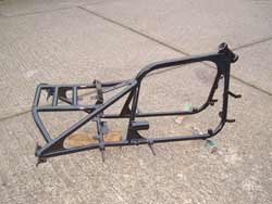 What a bargain! Dropped them off on a Monday afternoon. First thing Wednesday morning I got a phone call to say they were ready for collection, all wrapped up in protective foam sheet. They’re an industrial coater though, rather than a show quality one, & because they shot blast & spray in the same workshop, you occasionally find little pin heads of grit trapped under the coating. There are one or two on this frame but fortunately they’re all in areas where they won’t show. For that cost we won’t complain though. The frame, yokes, tank & bars will be gloss. The lights, battery box & mudguards will be satin. The saddle will be sat on. |