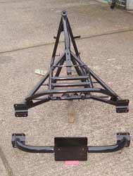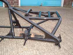 you’re actually interested in it all, so although this is the last piece of the frame story, I’ll bung in more build updates as & when there’s some progress to report. My job was to design the trike as a whole & create the frame. Now it’s up to Simon, the owner, to put it all together -with a little help & supervision from yours truly. Conceptual artist, design consultant, fabricator -is there no end to my talents. And all for free. I’m far too nice for my own good you know. So what can I show you to bring this blockbuster to a close? Wanna see the finished frame, fresh from the coaters, in glorious, glossy black? O.K then. |