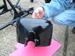 country lanes, (can’t they Karen!), but are perfectly happy on normal A roads. You do get very good at spotting pot-holes though, but unfortunately, with 3 wheels spanning the road, you’re guaranteed to hit them with at least one corner! You can see here how the welds on the rack/pillion frame-work have been smoothed out. Looks lovely -nice, flowing lines. SO much time & effort has gone into making this all look deceptively simple. |