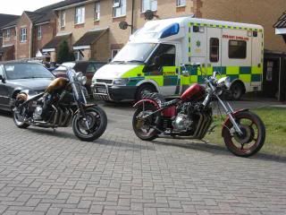 Quick post here are the current bikes after winter rebuilds/repaints....Oh also the rolling project Ex Ambulance......Posting after bumping into a very nice English Bull with a beardy bloke attatched at Salisbury MAG....Voodoo....