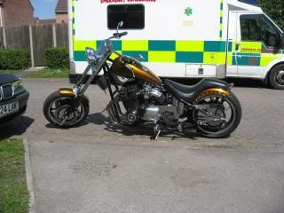 In a mad moment I stuck my gold Chop up for sale on ebay but don't really want to sell it as not much I can replace it with that would be so much fun even with the pain lol......It was after following a few club members I know up to Swindon Nomads & me trying to keep up with them on sports bikes that I stuck it up...No trouble staying with them but mine can be a bit of a handful on roundabouts & sharp corners & when I got home I checked & noticed I have ground away most of my right foot peg following them, as have to lay mine down a fair bit when cornering at speed, well that & the fact I hit 2 pot holes one after the other first I went up & second I was coming down when the bike was going up so jarred is an understatement....