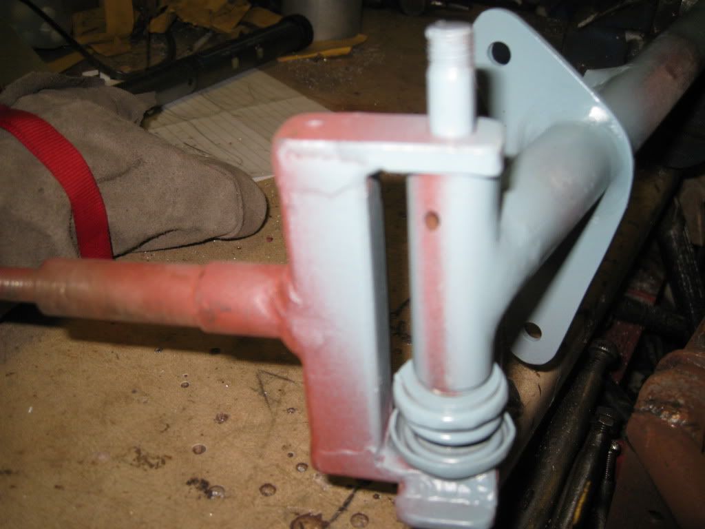 This shows the downward facing hole to allow for oiling at a later date! The king pin just runs in the tube metal to metal. Ive used this method on several of these wagons with hardly any wear after a couple of years. I dont bother with ackerman angles etc,as the  speeds are so slow and it doesnt warrant all the setting up.