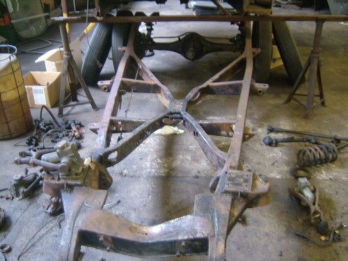 Started where i wanted to with the bare chassis that is in fantastic condition no rot or rust whatsoever, i have rebuilt the front king pins and re bushed the arms and its assembling the front end next. Rear axle has 4.6 marina van diff installed, and i am going with an MGB engine on to a floor change Devon gearbox.  I have looked in to this in detail myself after reading what was involved, and i have worked out how i will go about this and will show in detail exactly what i do so as others contemplating similar install will have details and photos to help if they need them.