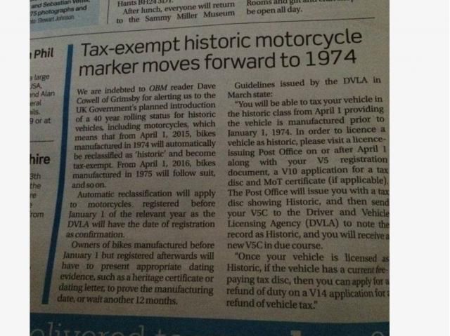 Sounds like good news but I can't help wondering if the government will then put all sorts of restrictions on 'historic vehicles'.