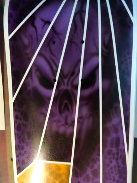 The base is white with holographic flake over, so should also show through the Fools Gold, and Purple candy once my clearcoater has worked his magic with it!!!! Cheesy