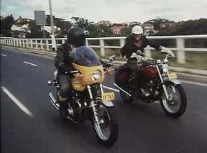 Or rather “bikies”, as Stone was an Australian bike flick, rather than the usual American fare. The standard uniform of cut-off denim jackets, long hair & beards may be the same, but instead of long forked Harleys, the Ozzies embrace the latest ‘70s Japanese technology. Kawasaki Z900s, kitted out with nose fairings & custom paint jobs are the order of the day here. Their superior handling & performance, compared with the Hollywood bikers’ Harleys, means the cast & extras of Stone get to indulge in endless wheelies, burnouts & chases around the back streets of Sydney.