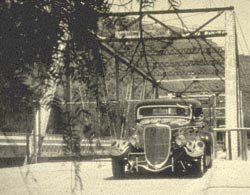 The film opens with two sailors racing to get back to base after a weekend’s shore leave & falling foul of the sheriff as they pass through Clarksberg. Running for the county line they’re chased by the Lawman around the deadly curves in the hills above the town until he shunts their car over the edge of the 100 foot deep gorge.