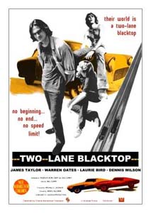 So my verdict? Personally I think Two-Lane BlackTop had the potential to be a great film; all the ingredients were right, but it was ruined by the wrong director. It would’ve been so much more watchable as a straight car film, rather than Hellman’s self indulgent search for freedom. The driving shots, including some interesting period racing footage, are wonderful. The big, rumbling Chevy looks & sounds beautiful, the scenery’s good -but the bits in between are slow & tedious. The script’s non-existent & the main characters don’t engage your interest at all.