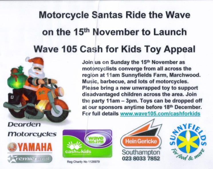 Every year the Sunnyfields organic farm shop near Southampton organise a charity toy run, collecting toys for underprivileged kids. Lots of Santas on bikes & trikes. Around 250 turned out today with lots of toys being collected for local charities.