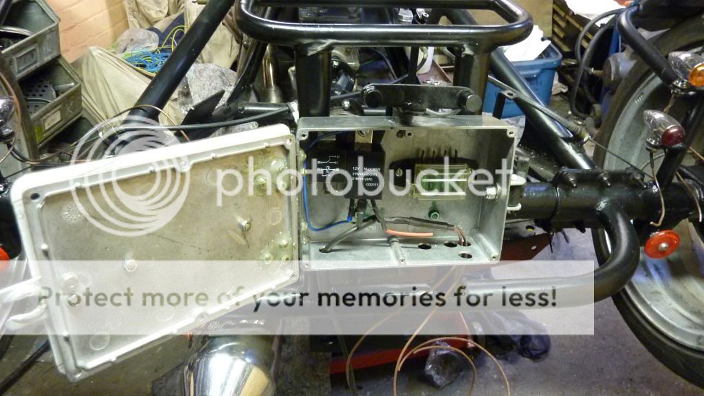 this is the K box behind the numberplate for the minimal electrics, hinges back and fastens to show the plate,the no plate lights illuminate the inside when its open, handy for those dark breakdowns Undecided