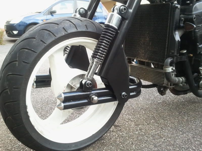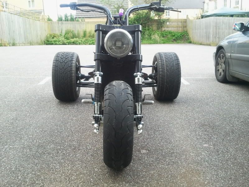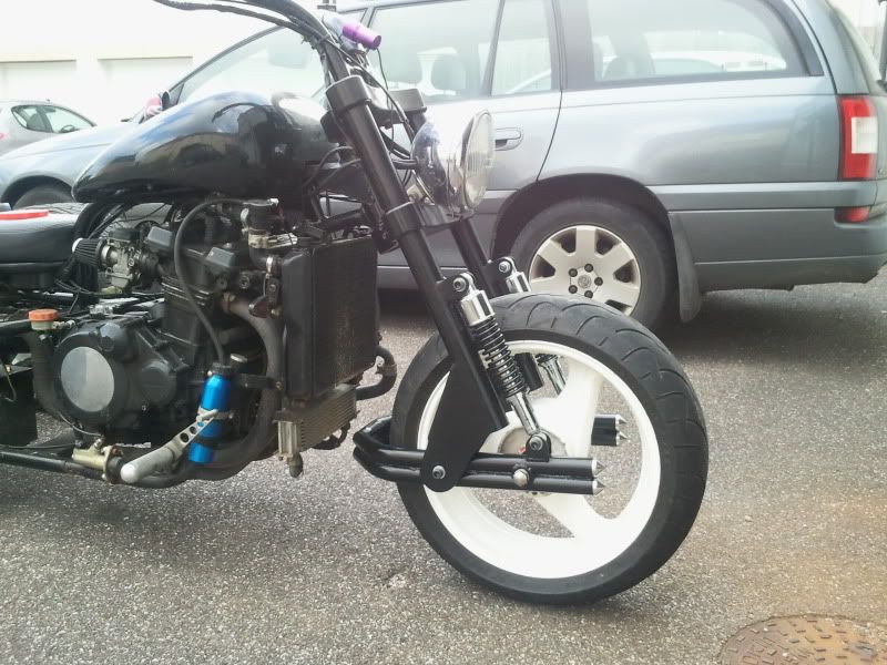 front wheel got changed to a 180 tyred rear, then I found that the handling wasnt all that, mainly as I had to drop the rear end and this ruined the ride height setup from original design, front forks were too short and too soft
